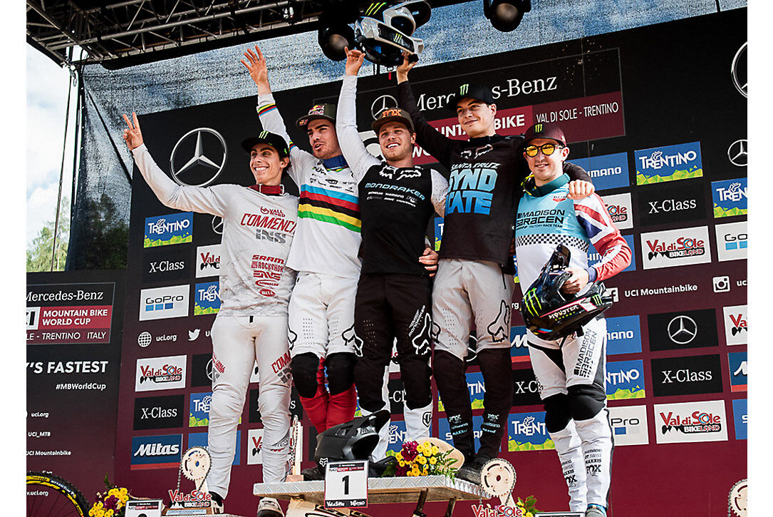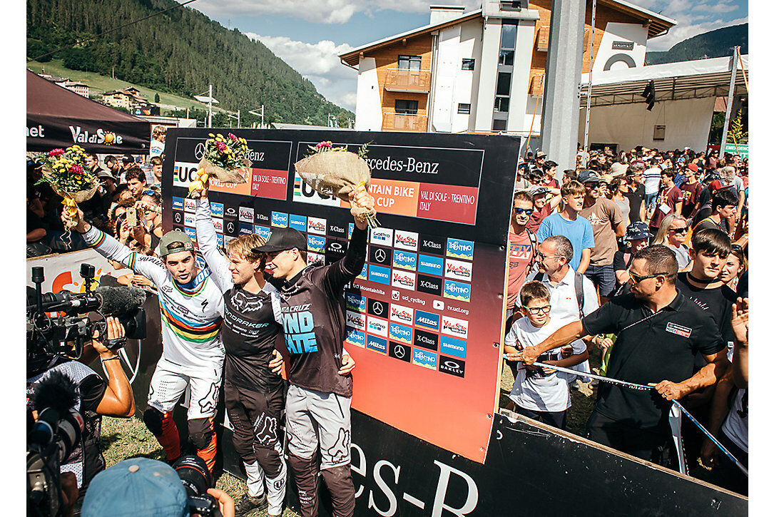 Laurie Greenland laid down an incredible run on the legendary Black Snake Track to take his first-ever UCI Downhill World Cup victory at Val Di Sole. Greenland’s run bested fellow Fox riders Loic Bruni and Loris Vergier by nearly three seconds. It was a spectacular victory for the British rider. An excited Greenland stated later, “It means everything man, it’s literally what I’ve been working for my entire life...” Laurie has been challenging for victories all season but hadn't put together the perfect run until today. His win breaks the French stranglehold on the top step of the podium - the first time a non-French rider has won in almost a year.